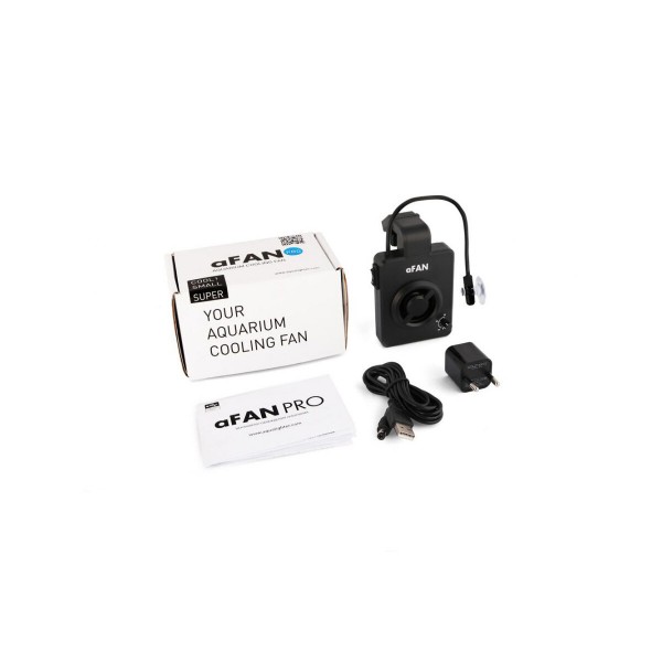 Питание вентилятора aFAN PRO осуществляется безопасным напряжением 5В от USB порта или адаптера питания 100-240В (входит в комплект вентилятора). aFAN PRO крепится с внешней стороны аквариума, что препятствует преждевременному выходу его из строя от повышенной влажности и коррозии. Это особенно актуально, когда aFAN применяется в морской аквариумистике. Управление вентилятором aFAN PRO, кроме штатного переключателя, может осуществляться при помощи внешнего светотемпературного контроллера AquaLighter Device, который даст возможность большего контроля над устройством: включение и выключение в зависимости от заданной температуры воды, плавное увеличение уменьшение оборотов мотора вентилятора.