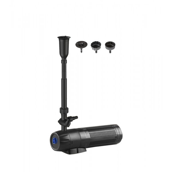 Встроенный насос, мощностью 12 Вт и производительностью 1000 л/ч, обеспечивает постоянную циркуляцию воды. Фильтр оснащен аксессуарами и фильтрующими элементами, необходимыми для его эксплуатации. Фильтрующие элементы обеспечивают оптимальную биологическую и механическую очистку прудовой воды.