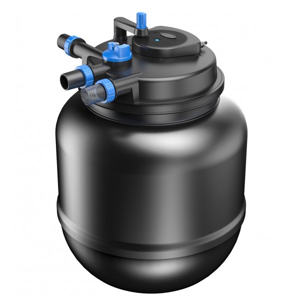 SunSun CPF-50000 - прудовый фильтр с UV лампой 55W. Фильтры серии CPF - это практически последнее поколение прудовых фильтров, сочетающее себе компактные размеры с высокоэффективной биомеханической фильтрацией и технологией UV очистки. Фильтр можно поместить в “приямок” рядом с прудом, сделав, с помощью декора, его полностью незаметным. Все соединения и технологическая часть располагается в крышке. Это позволяет очень просто обслуживать фильтр. Его легко извлечь из углубления для всех технических манипуляций. Очищенная вода из фильтра может подаваться в пруд через декоративный водопад.