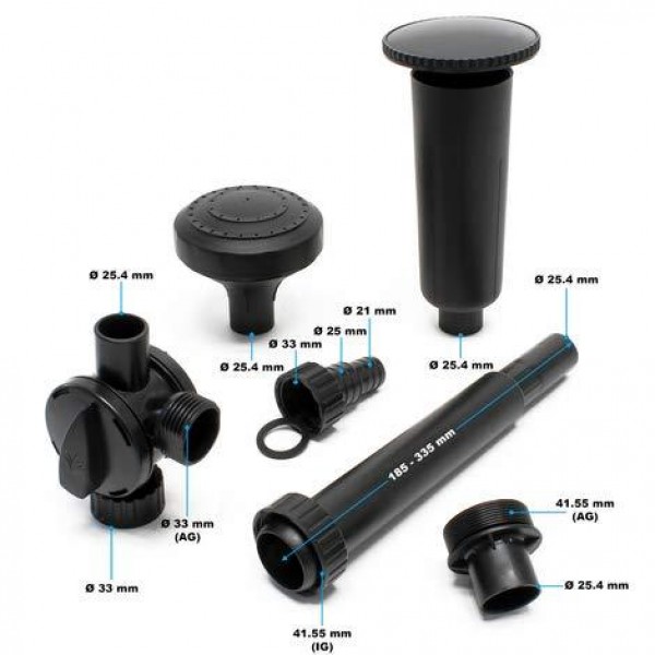 - В комплект входит телескопическая выдвижная трубка (до 43 см) и две фонтанные насадки