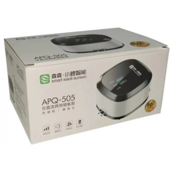 SunSun APQ-505 - это мощный аквариумный компрессор с аккумулятором производительностью 8.5 л/мин (510 л/ч). Устройство гарантирует непрерывную работу в отсутствии электричества.