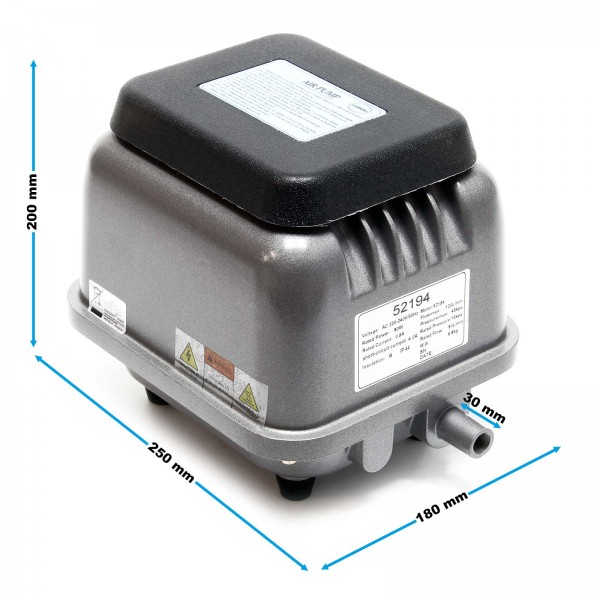 Компрессор не требует систематической смазки. Это значит, что поток воздуха, который подается в воду, будет чище, по сравнению с моделями, где масляная смазка необходима.