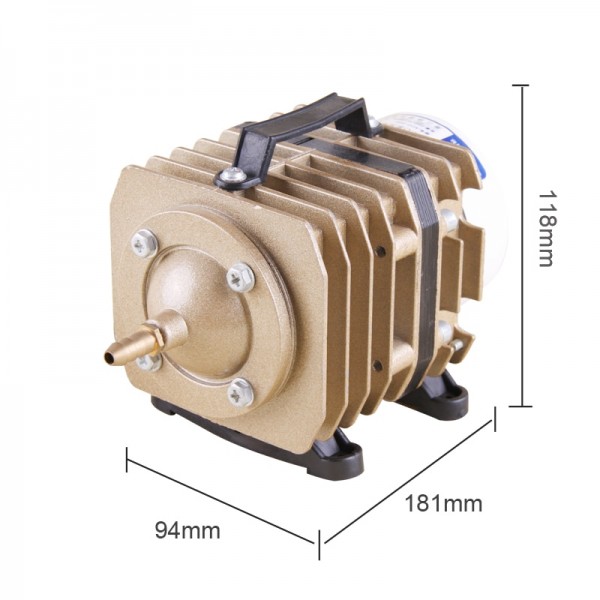 От правильно подобранного компрессора зависит здоровье рыб, качество воды и стабильность всей аквасистемы. Основными параметрами для расчета мощности компрессора является объем и глубина водоема - средняя производительность воздушного насоса (л/час) соответствует, примерно, четверти объема пруда. Кроме того имеет значение плотность посадки рыбы, растения, режим кормления, сколько точек аэрации имеет пруд и как осуществляется фильтрация. Компрессор SunSun ACO-003 – это мощный поршневой компрессор в надежном корпусе, обеспечивающий аэрацию пруда глубиной до 1,5 метров и выдающий поток воздуха мощностью 50 л/мин.