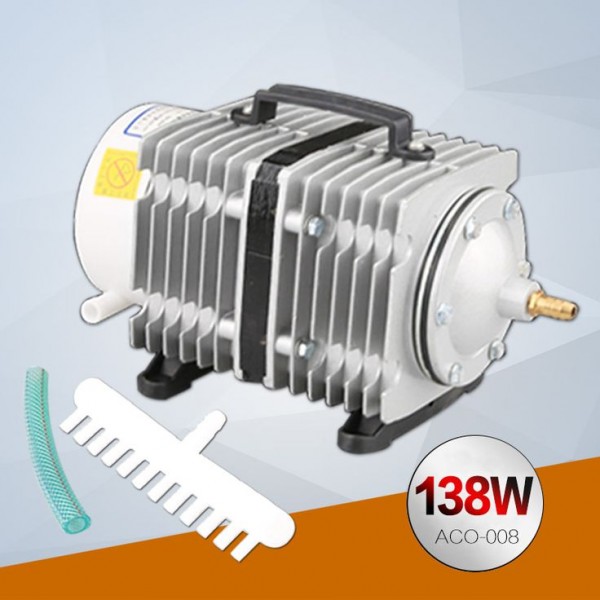 Компрессор SunSun ACO-008 - это максимально мощный и современный поршневой прудовый компрессор в данном ценовом сегменте. Потребляемая мощность: 138 Вт; Напряжение: 220 В; Масса: 4,5 кг; Воздушный поток: 100 л/м; Давление: 0,04 МРа; Частота: 50 Гц; Размер: 259x135x167 мм; Диаметр выходного отверстия: 8 мм; Количество выходов множителя: 12