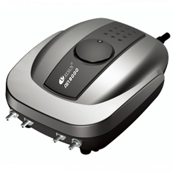 Компактная оригинальная модель нового воздушного компрессора AIR-8000 Resun способна обогатить кислородом аквариум 500-700 л. Заводской мощности (8W) хватает, чтобы создать давление воздуха в 16 kPa. Регулировать мощность можно при помощи регулятора, вмонтированного в компрессор. В комплектации имеются 4 выхода, способствующие увеличению или уменьшению производительности установки.