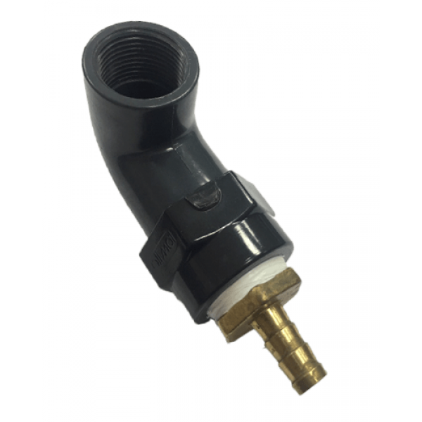 Переходник предназначен для подключения мембранных дисковых распылителей серии HMD-PRO к воздушным шлангам. Конструкция с углом 90° позволяет компактно разместить подключение и снизить нагрузку на шланг.
