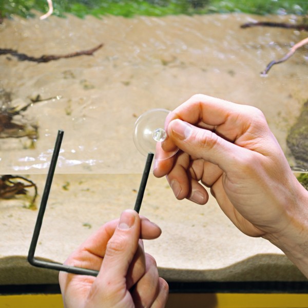 В комплекте плавающего острова включено четыре присоски, которые позволяют легко и надежно закрепить его на стенке аквариума или террариума.