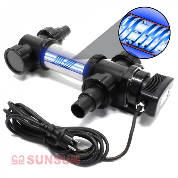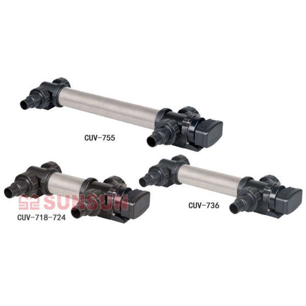 SunSun CUV-736 подходит для пресной и морской воды в аквариумах, объемом до 1800 л или прудах , объемом до 55 000 л. Одноклеточные водоросли, вызывающие «цветение» воды, сине-зеленые водоросли, бактерии, взывающие помутнение воды и другие нежелательные микроорганизмы, в т.ч. патогенные, при прохождении через стерилизатор, погибают под действием ультрафиолета. Стерилизатор не вредит рыбам, растениям, полезным бактериям. Микрофлора, участвующая в биофильтрации остается в порах специальных материалов фильтра и учувствует в последующей очистке воды. Стерилизатор действует только на микроорганизмы находящиеся в воде, то есть он никак не нарушает биоравновесие аквасистемы, биофильтрацию и не вредит здоровой микрофлоре аквариума и пруда.